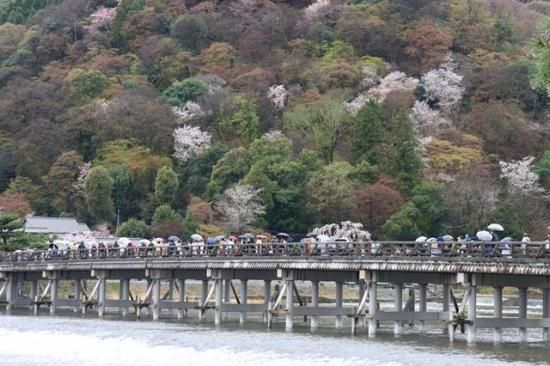【日本の風景ポストカード】京都市雨の嵐山渡月橋と桜9ポストカード絵葉書はがきハガキ葉書