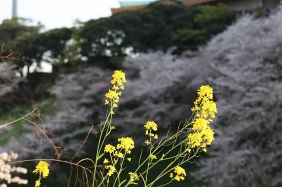 【日本の風景ポストカード】東京都千代田区北の丸公園の桜と菜の花15の絵葉書はがきハガキ葉書