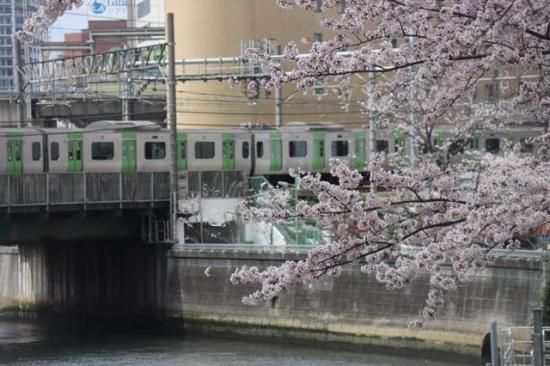 【日本の風景ポストカード】東京都目黒区五反田目黒川の桜と山手線の絵葉書はがきハガキ葉書