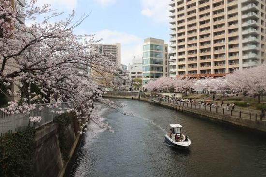 【日本の風景ポストカード】東京都目黒区五反田目黒川の桜とボートの絵葉書はがきハガキ葉書