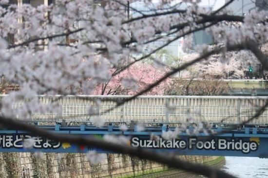 【日本の風景ポストカード】東京都目黒区五反田目黒川の桜15すずかけ歩道橋の絵葉書はがきハガキ葉書