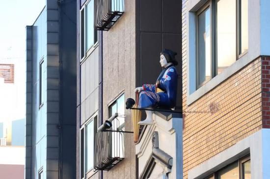 【日本の風景ポストカード】東京都台東区浅草屋根の上に載っている芸人の絵葉書はがきハガキ葉書