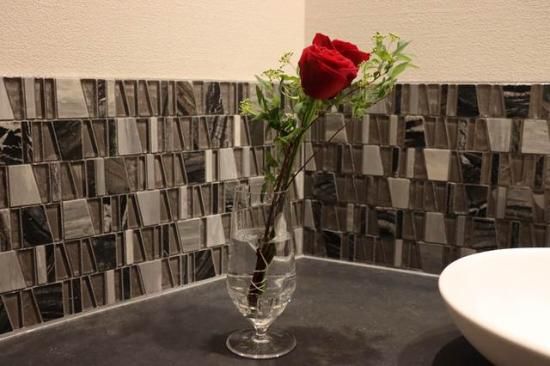 【日本の風景ポストカード】おしゃれな洗面に置かれた赤いバラの花の絵葉書1はがきハガキ葉書