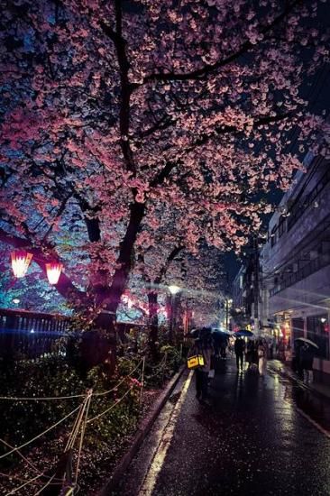 【日本の風景ポストカード】東京目黒川の夜桜2023年の絵葉書はがきハガキ葉書