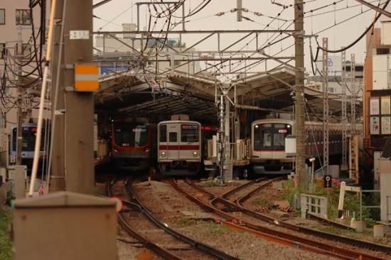 【日本の風景ポストカード】東京都自由が丘駅に停車中の東急5000系Y500系東武9000系70000系の絵葉書はがきハガキ葉書