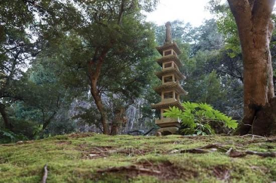 【日本の風景ポストカード】日本庭園5段の燈篭と深い緑の木々と苔3(成田山公園)のはがきハガキ葉書