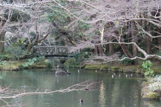 【日本の風景ポストカード】文殊池に架かる橋と鳥2(成田山公園)のはがきハガキ葉書