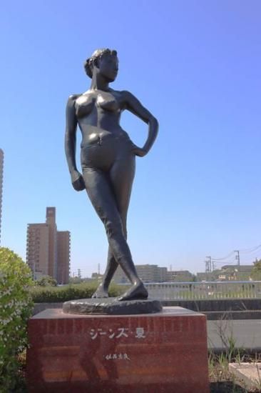 【日本の風景ポストカード】埼玉県春日部駅東口の銅像女性「ジーンズ夏」のはがきハガキ葉書