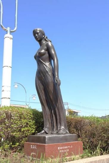 【日本の風景ポストカード】埼玉県春日部駅東口の彫刻銅像女性のはがきハガキ葉書
