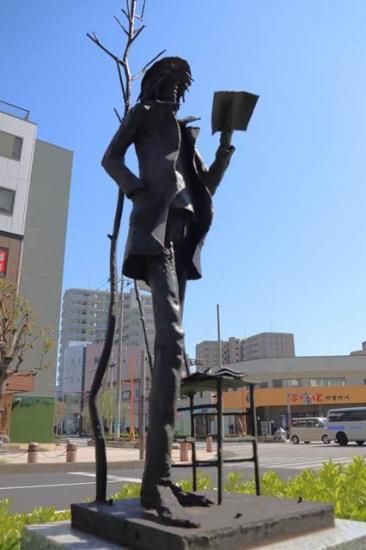 【日本の風景ポストカード】埼玉県春日部駅東口の彫刻銅像片手に本男性「詩想」3のはがきハガキ葉書