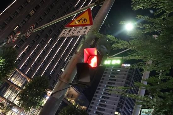 【韓国の風景ポストカード】ソウル麻浦区マポ区裏道の夜の交通標識のハガキ葉書