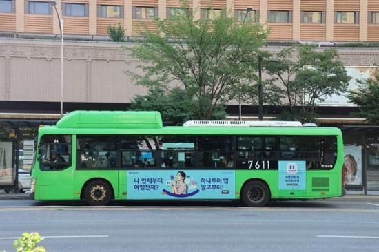 【韓国の風景ポストカード】ソウル麻浦区マポ区を走る路線バスの風景のハガキ葉書
