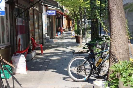 【韓国の風景ポストカード】ソウルソスンラギル宗廟石垣道(西巡邏通り)と自転車のはがきハガキ葉書