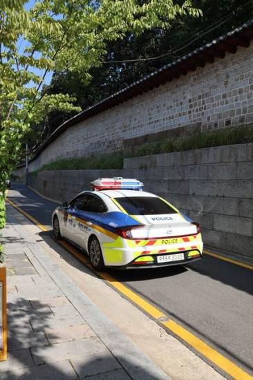 【韓国の風景ポストカード】ソウルソスンラギル宗廟石垣道(西巡邏通り)とパトカーのはがきハガキ葉書