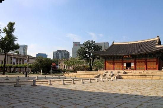 【韓国の風景ポストカード】ソウル鍾路区徳寿宮中和殿と街並みの葉書ハガキはがき