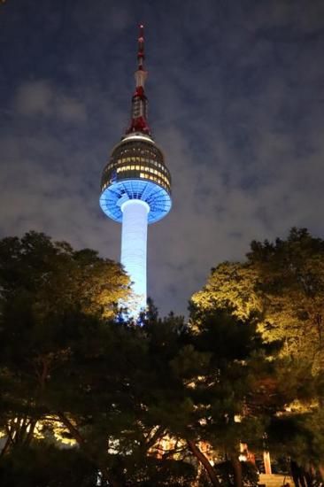 【韓国の風景ポストカード】ソウル特別市夜のNソウルタワーの葉書2ハガキはがき