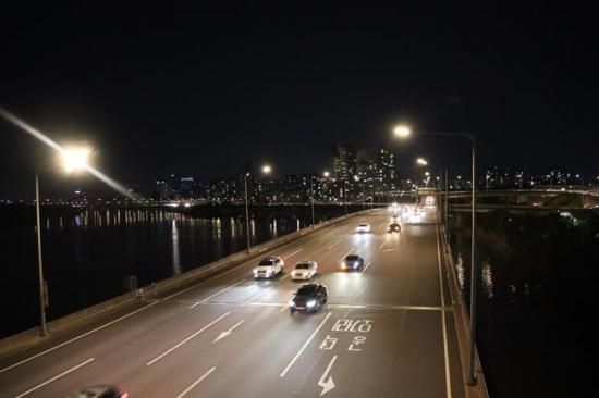 【韓国の風景ポストカード】夜のソウル麻蒲の夜景韓国高速道路70号線の葉書ハガキはがき1
